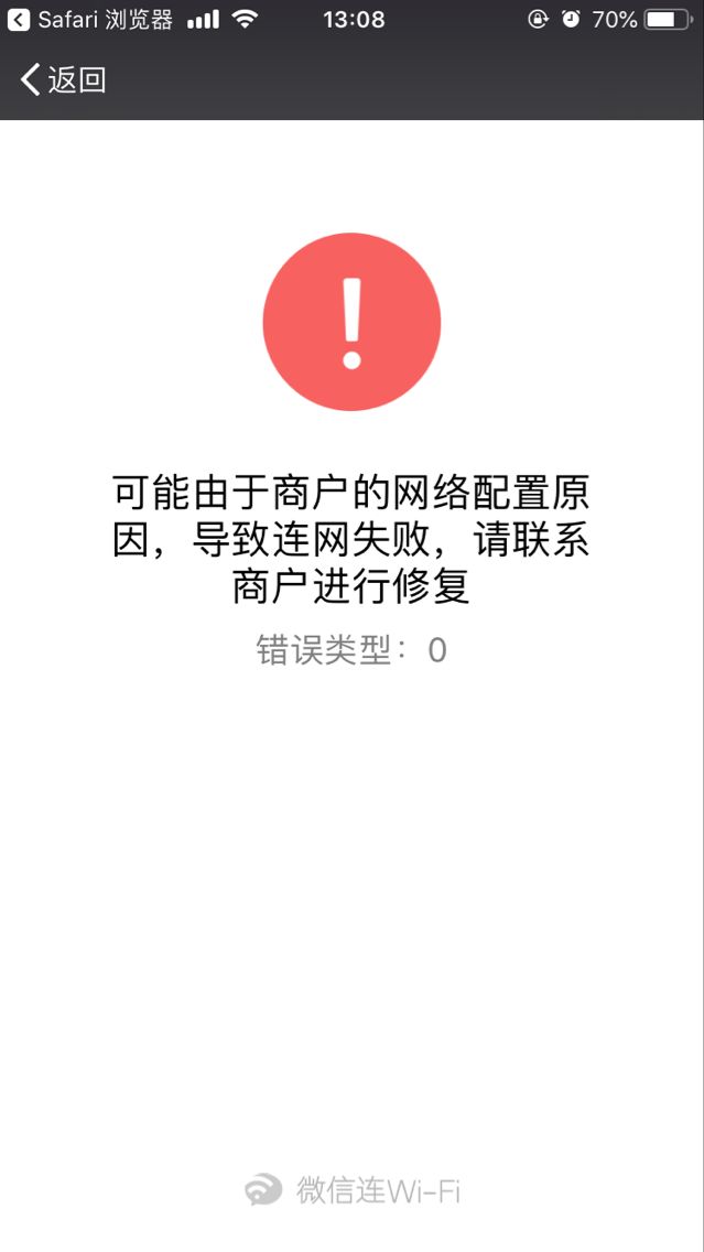 使用Portal的方式,在浏览器通过微信连WIFI唤起微信,结果到认证的时候出现此问题,还请高手解救,非常感谢。