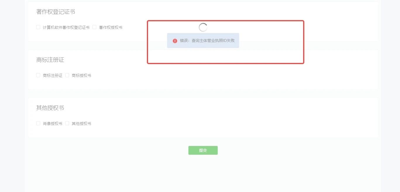 我们的微信小游戏在资质管理页面提交自审报告的时候,显示查询主体营业执照Id失败导致无法上传,已经更换个多个浏览器重新上传,均因为同样的原因上传失败,麻烦帮忙看看