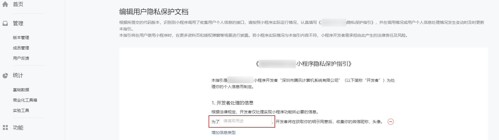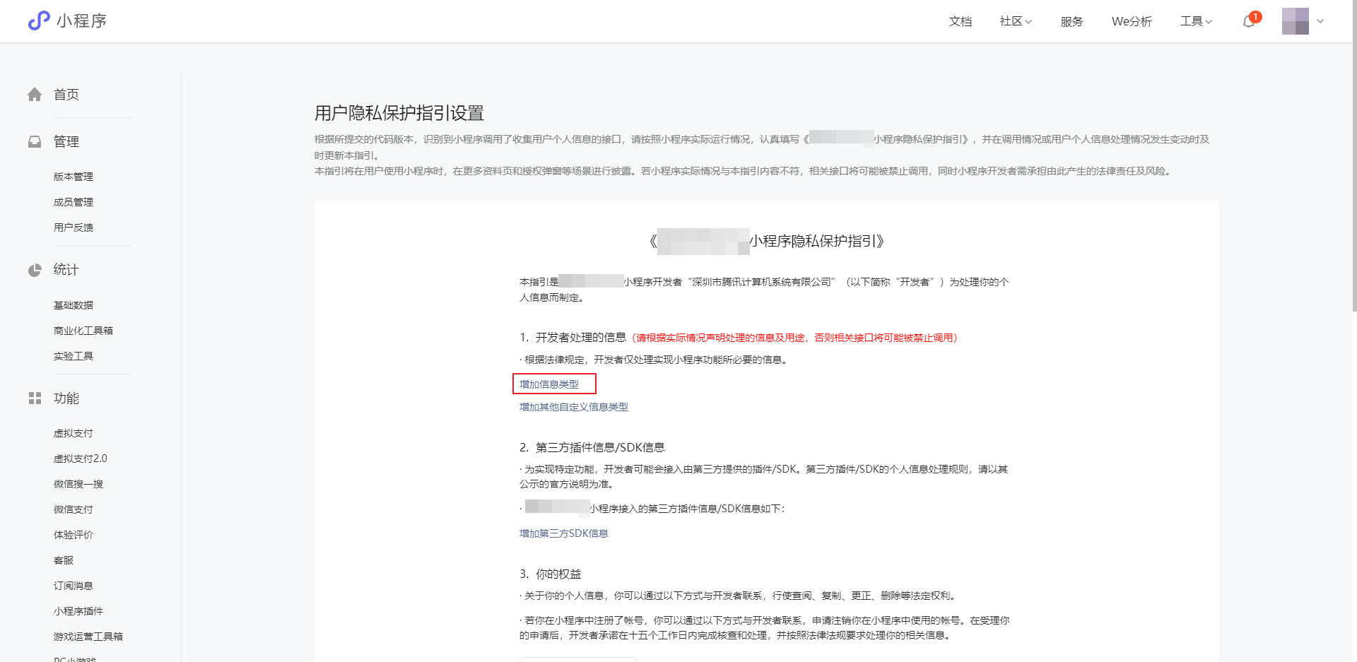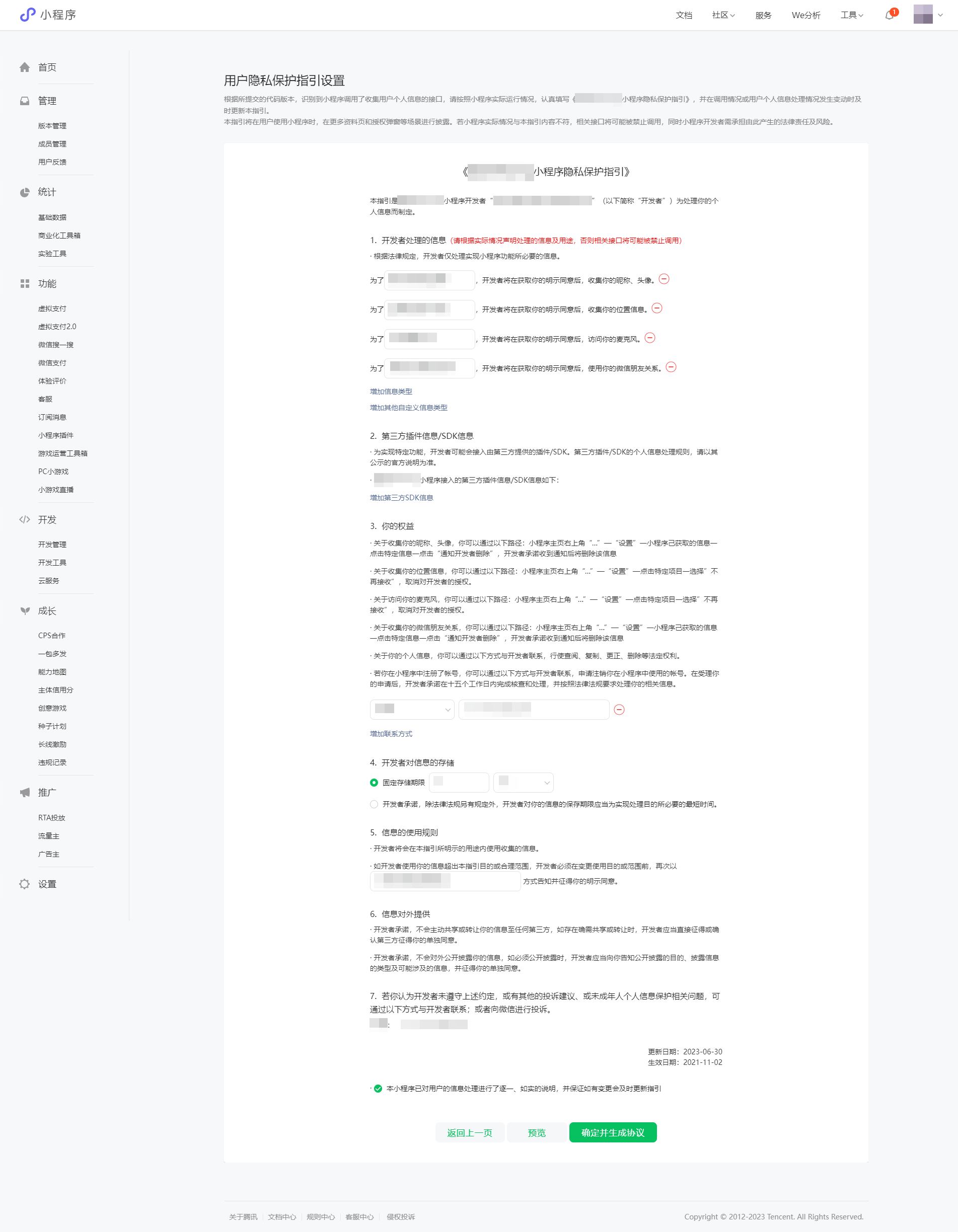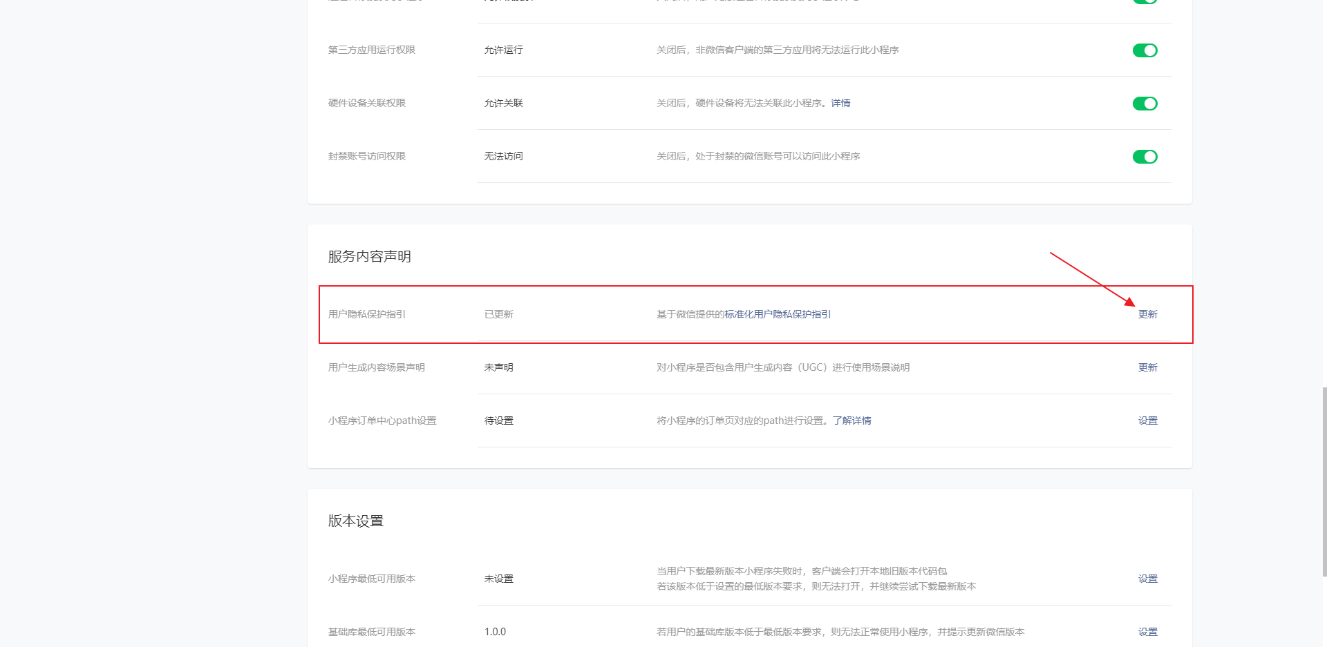 图2.1.1 更新《用户隐私保护指引》MP设置入口