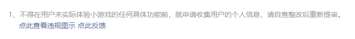 可视化工具调用了用户信息(素材库-插件)积木,登录游戏就会弹出申请用户信息的提示,但是提审的时候被拒绝,提示: