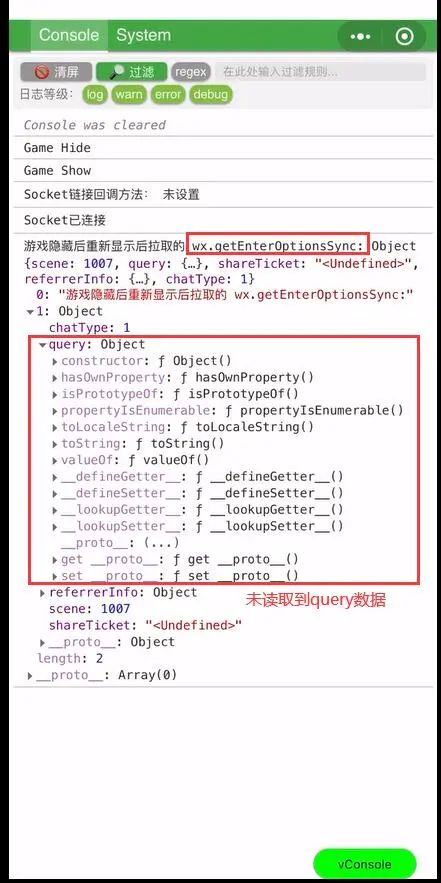 必须回到微信首页,进入聊天界面后,点击卡片,才能获取到query数据。
