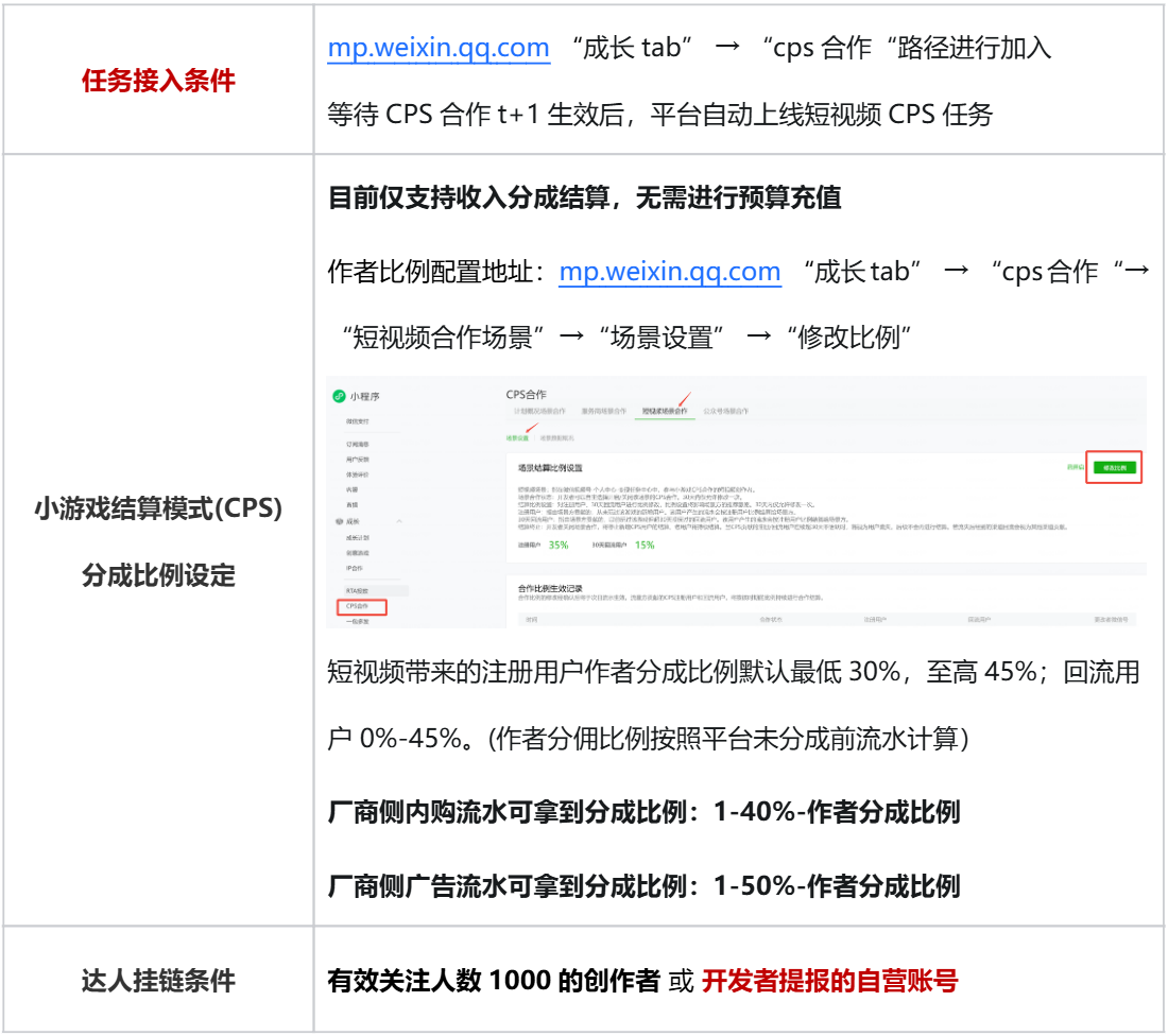 - CPS任务创作指导模板:🔗视频号小游戏CPS任务创作指导(外部for MCN)