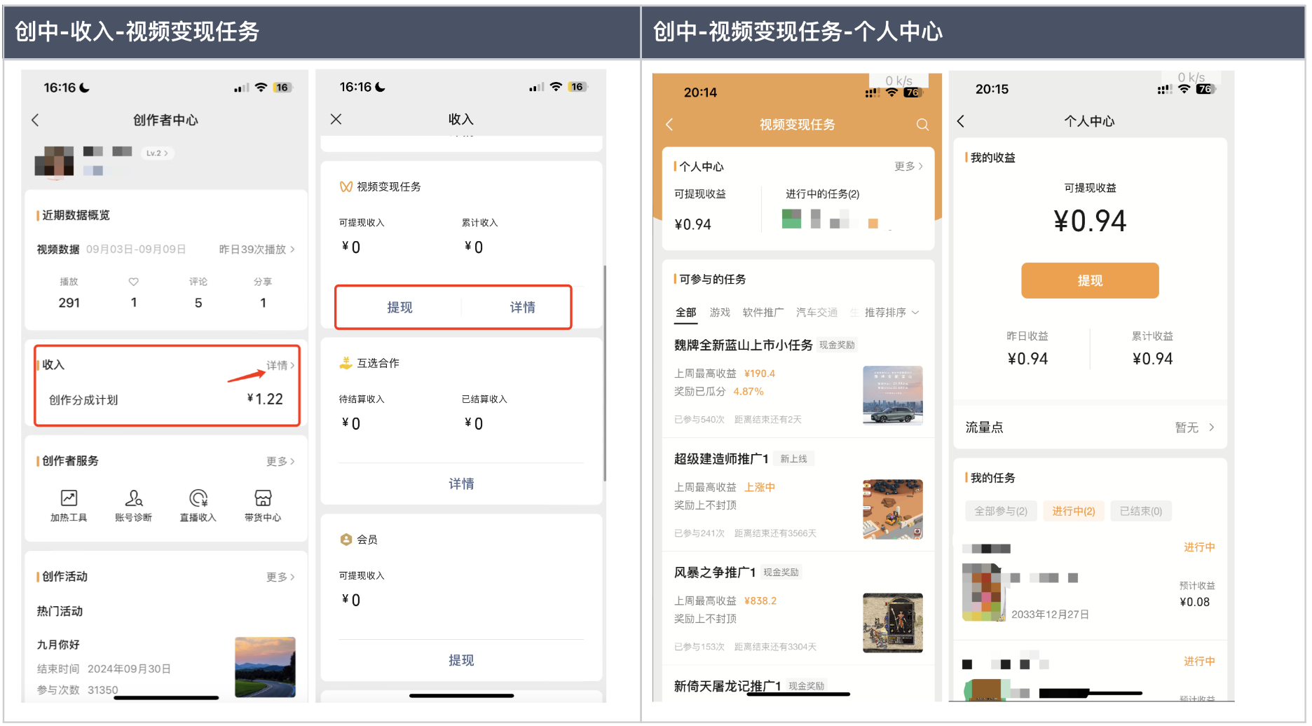 ⑤ 作者如何查看和提现收益:任务预期收益(税前)于发布视频的次日开始展示,并于每月8日、23日更新可提现的收入,创作者可以将收益提现至钱包。