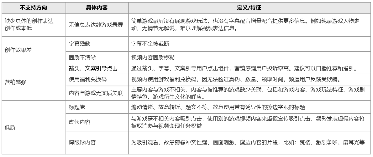 - 不鼓励内容方向:🔗小游戏视频变现任务内容创作白皮书