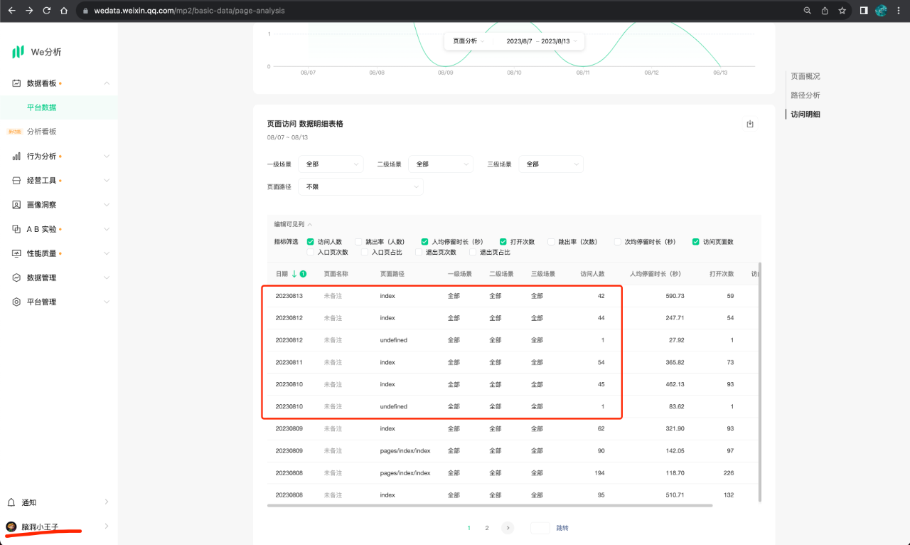 2. 实时分析数据里,页面路径那里,有个没有名字的“未知页面”,这是啥页面??? We分析的页面访问分析里面显示最多的pages/index/index才占比24.4%,index页面才17.7%,那其他的58%都去哪了???