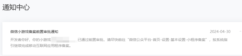 按主管部门要求,游戏名称和主体需与前置审批时保持一致。你的小游戏已获取前置审批号,你可以选择以下进行任一操作: