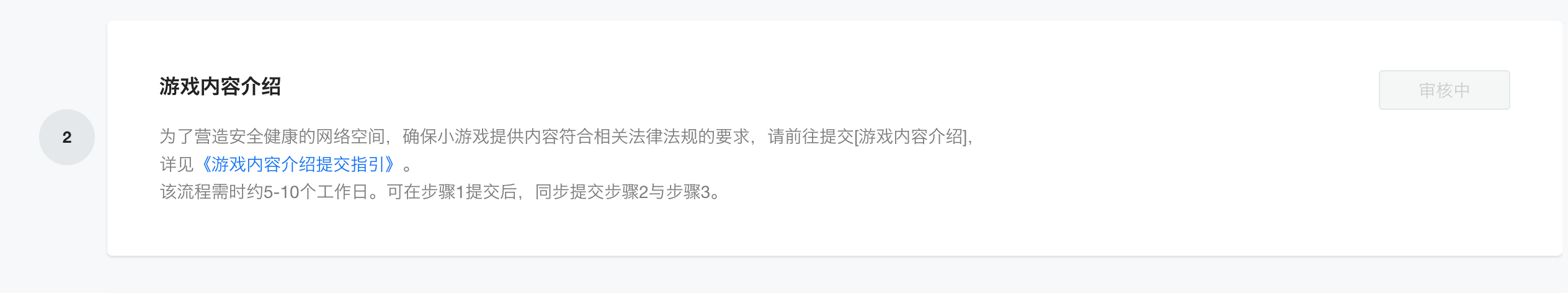 备案还是游戏介绍审核,一直卡着不动。流程需时约5-10个工作日。