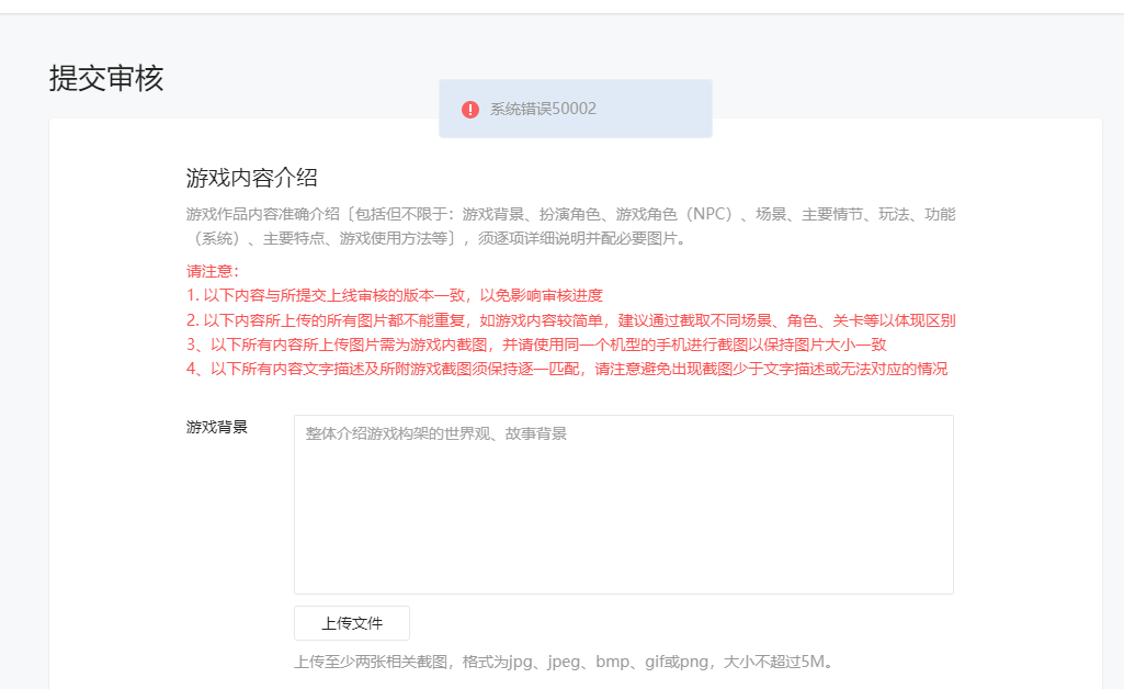 提交审核时,不能提交成功,提示system error,返回数据如下