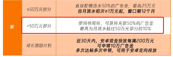 ②如使用快周转功能,转充10w,则获得广告金=30*10%+10*50%;还是10*50%、30*10%的最小值?