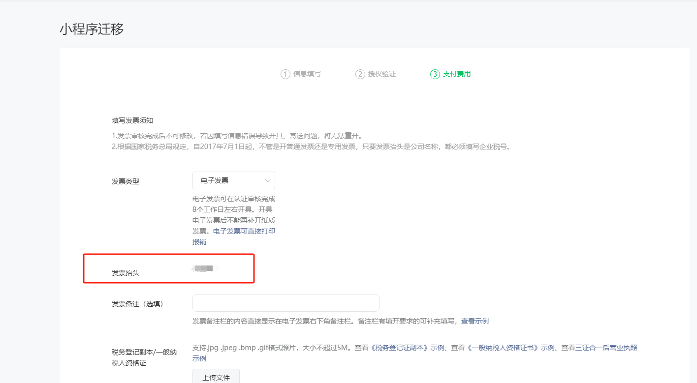 小程序主体个人变更为公司,进行到最后一步迁移打款,为什么开票信息的抬头默认还是个人的?