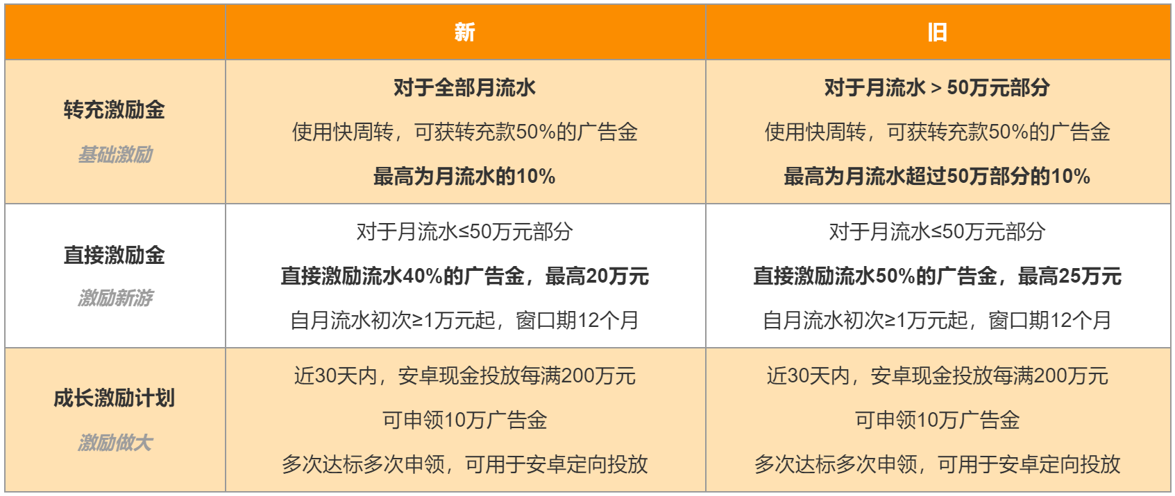 【成长激励计划】部分广告金,不与自然月绑定,安卓现金投放达标即可申领。