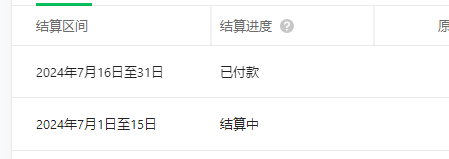 7月下半月的都到账了,上半月的收益还在结算中,官方帮忙看看