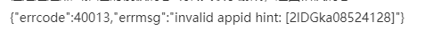 {"errcode":40013,"errmsg":"invalid appid hint: [2lDGka08524128]"}
