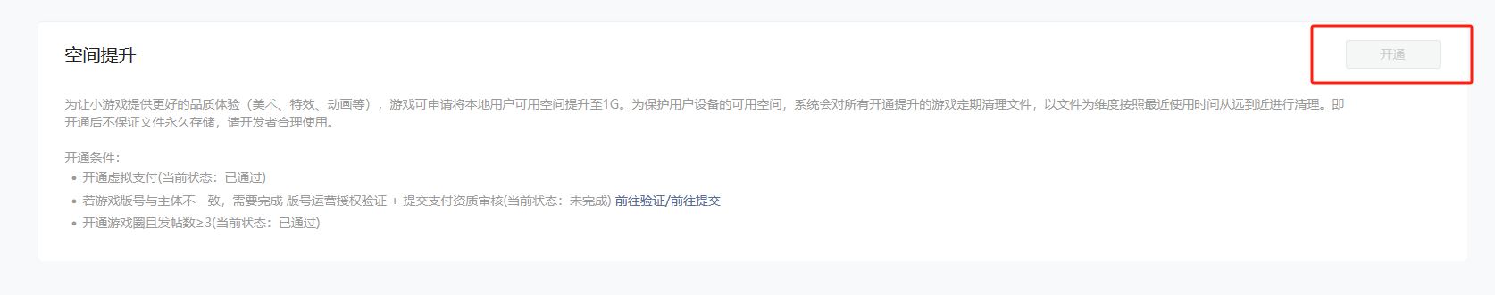 生产提效包-空间提升,在完成版号运营授权验证 + 提交支付资质审核后,为什么没法开通?(如同所示)