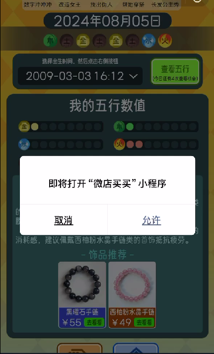 图1是小游戏体验版的界面,点击饰品推荐就弹出微店的小程序(图2和图3),最后就在图4一直卡着。看流程是跳转成功了,但是不知道为什么商品的内容页显示不出来。