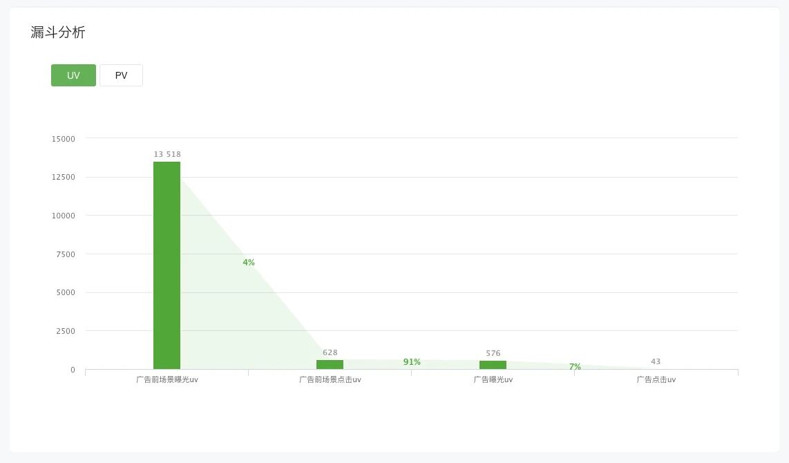 在用户选择/转化的链路上,平台提供漏斗分析模式,开发者可以更方便地分析点击率、转化率。