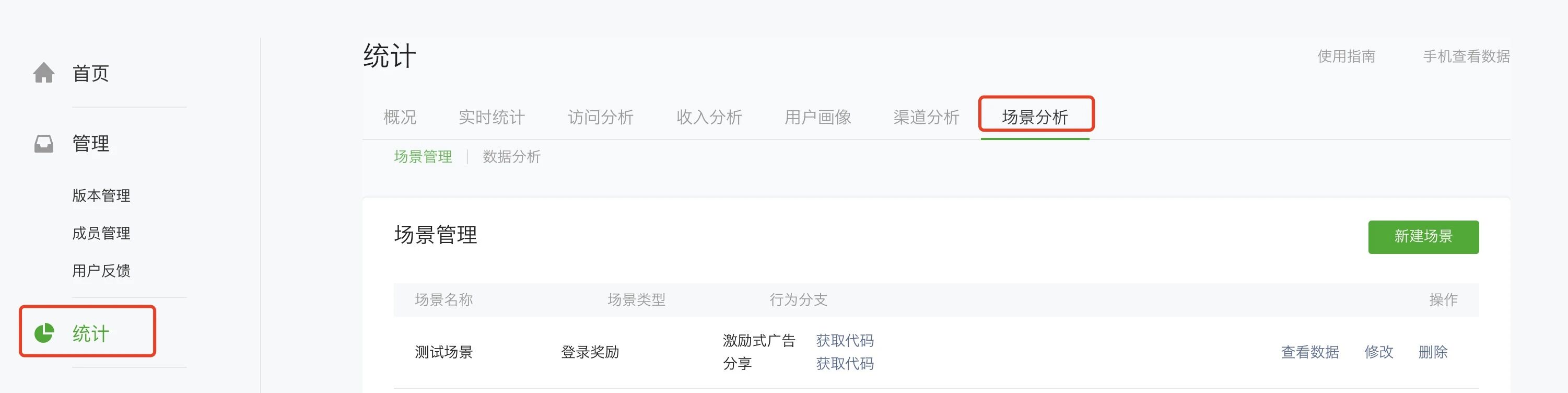 功能路径: 统计→ 场景分析 → 场景管理 → 新建/编辑场景