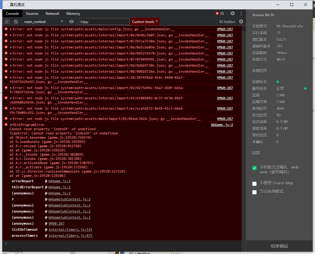 微信小游戏之前没有做分包的时候能进去,后来做了一系列分包操作之后就报了这个错,然后一直卡在小游戏加载页面进不去
