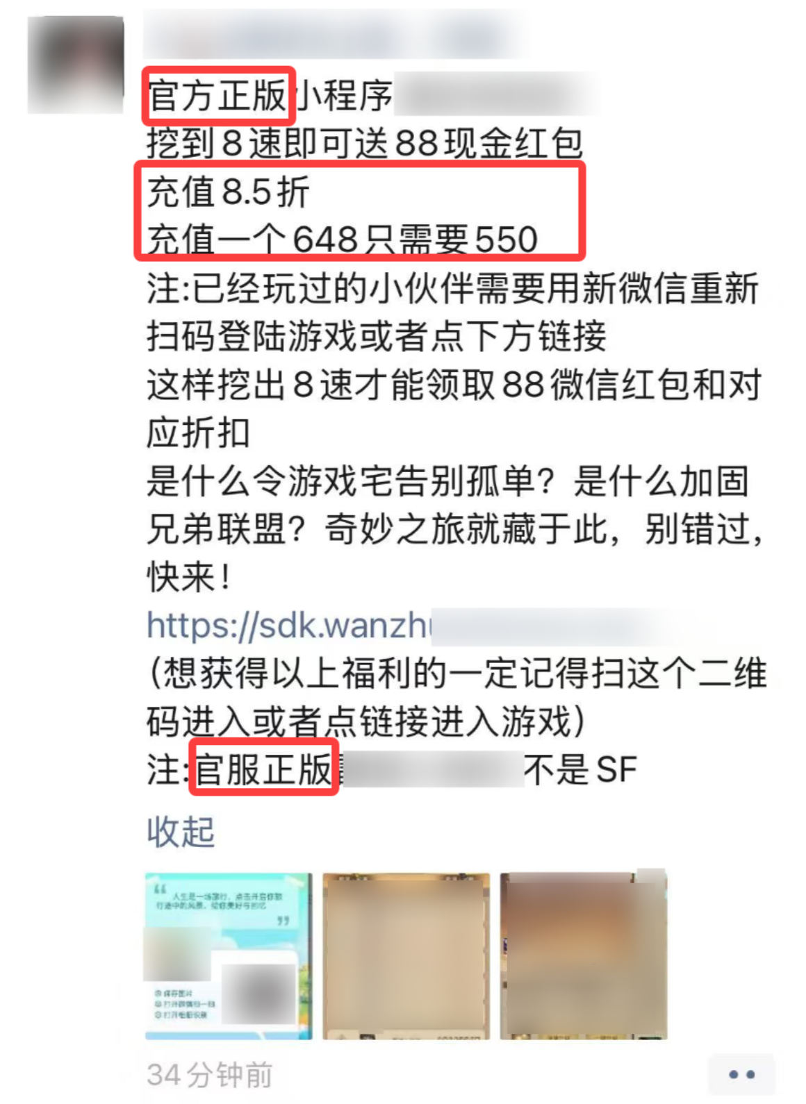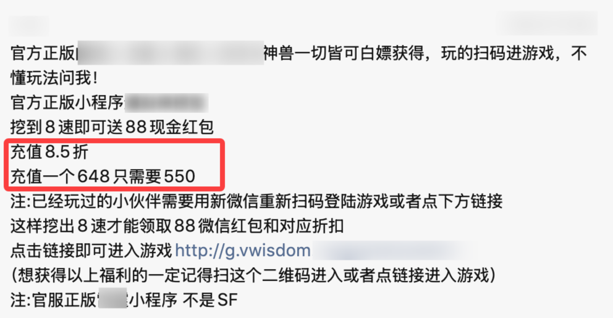 a. 在推广页面/链接/短信等处,冒充腾讯/微信/小游戏官方,或使用与腾讯/微信/小游戏官方近似的标识、名称、域名、图案等元素,进而引发用户误解的;
