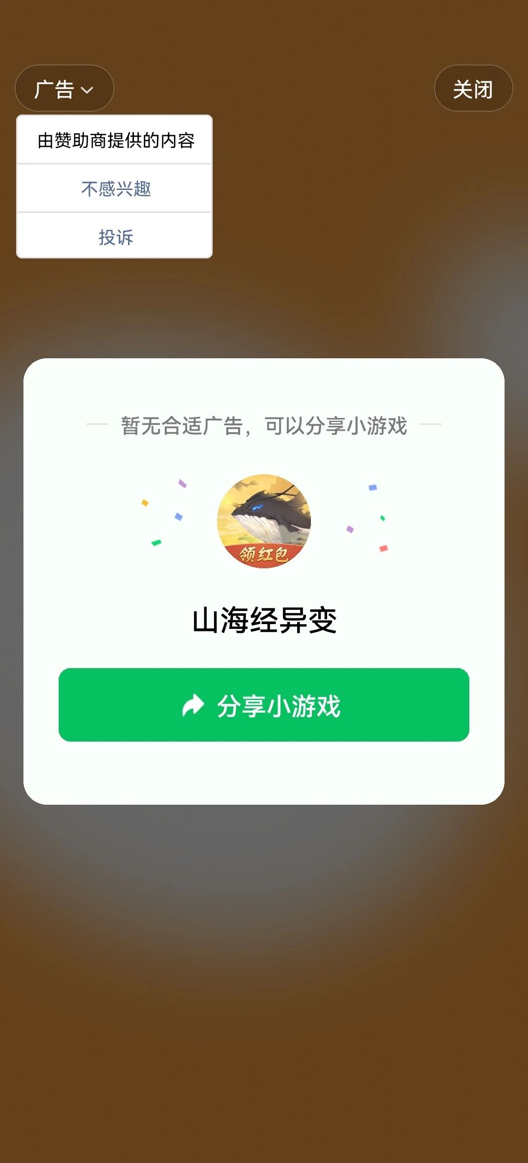 微信小程序游戏。里面没有广告全是分享。有个别还看不了广告。是不是我这个账号异常还是被你们封了?我找这个客服那个客服问题都不给我解决,我就想要个实话,就这么难吗?就在那里给我摸洋工。这样好玩吗我微信也删了几次,根本就没恢复这广告。修复都修复不了,那你把这个广告系统做出来有何意义