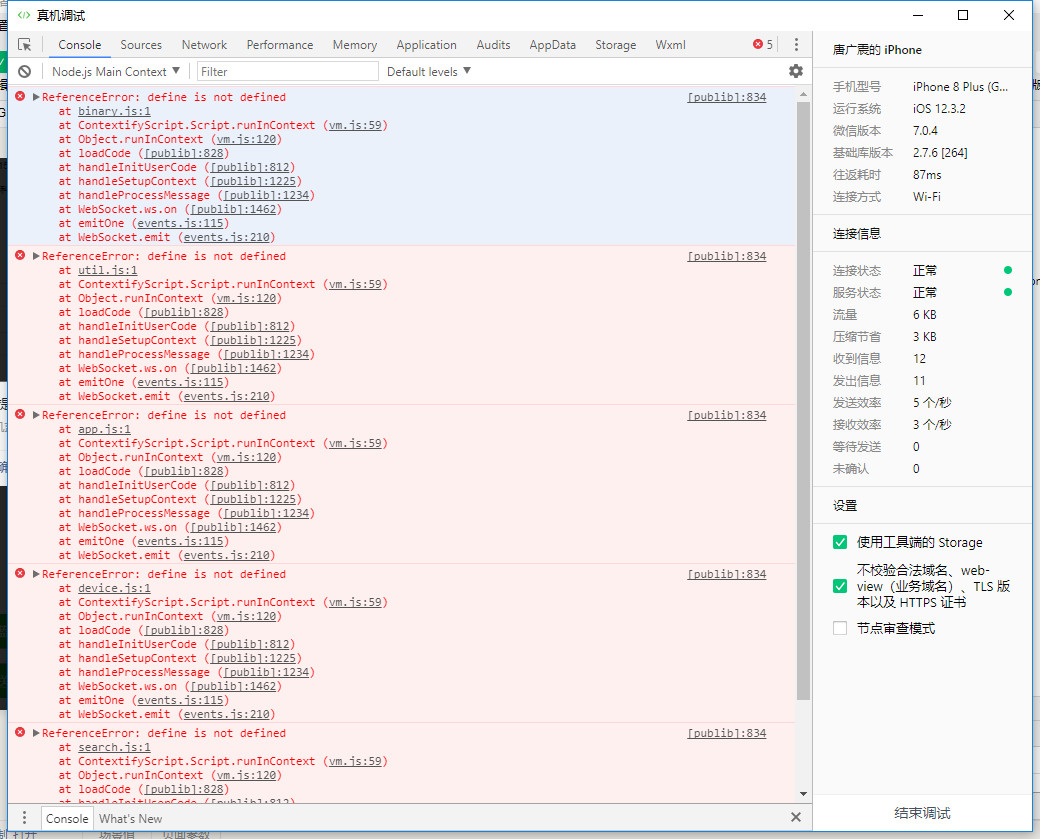 此小程序是手机打开蓝牙,并连接;安卓手机真机调试和正常扫码,可以正常使用;但是iPhone手机 扫码可以正常使用,但是在真机调试的时候,出现下面的错误。
