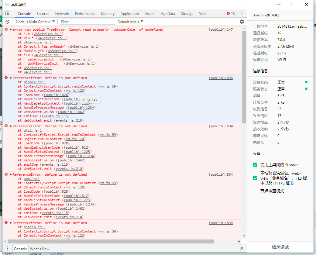 你好,可看下开发工具真机调试常见报错解答https://developers.weixin.qq.com/community/develop/doc/000cca451006984364d8a94c351808
