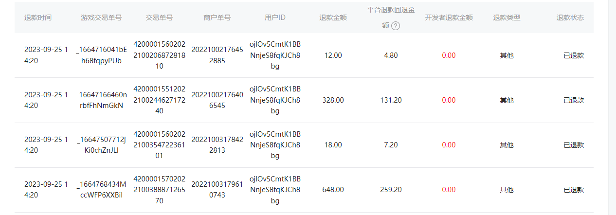 虚拟支付2.0退款,请问什么情况下,开发者退款部分显示为0,但平台回退部分有显示