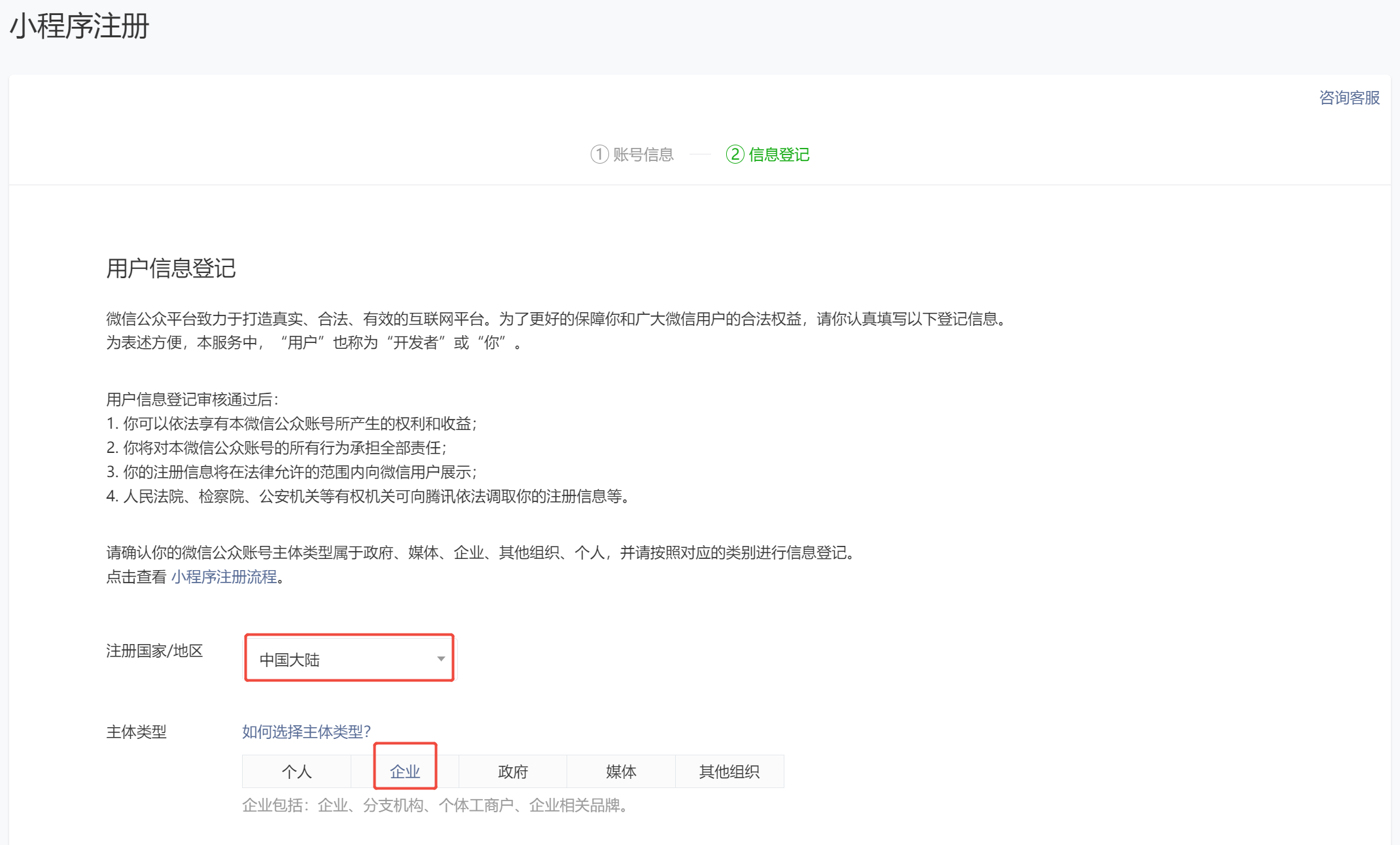 ● 公司请记得选择企业->企业类型