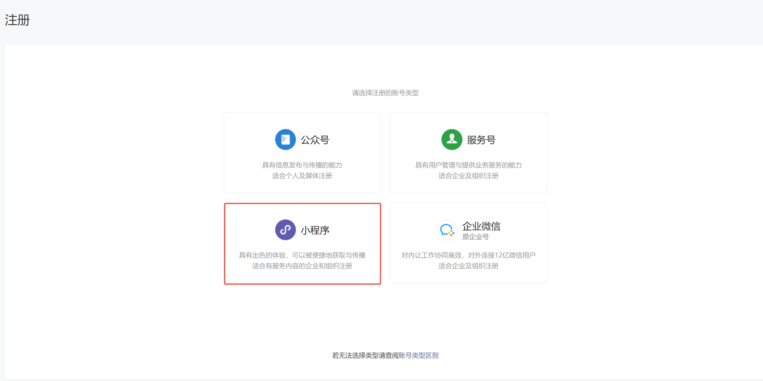 2、 账号类型选择小程序