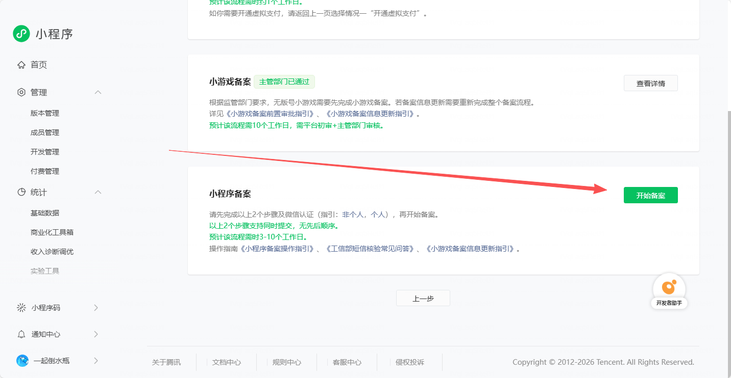 7、 进行ICP备案和版本审核等操作,只有完成ICP备案和版本审核通过后,才能发布上线。