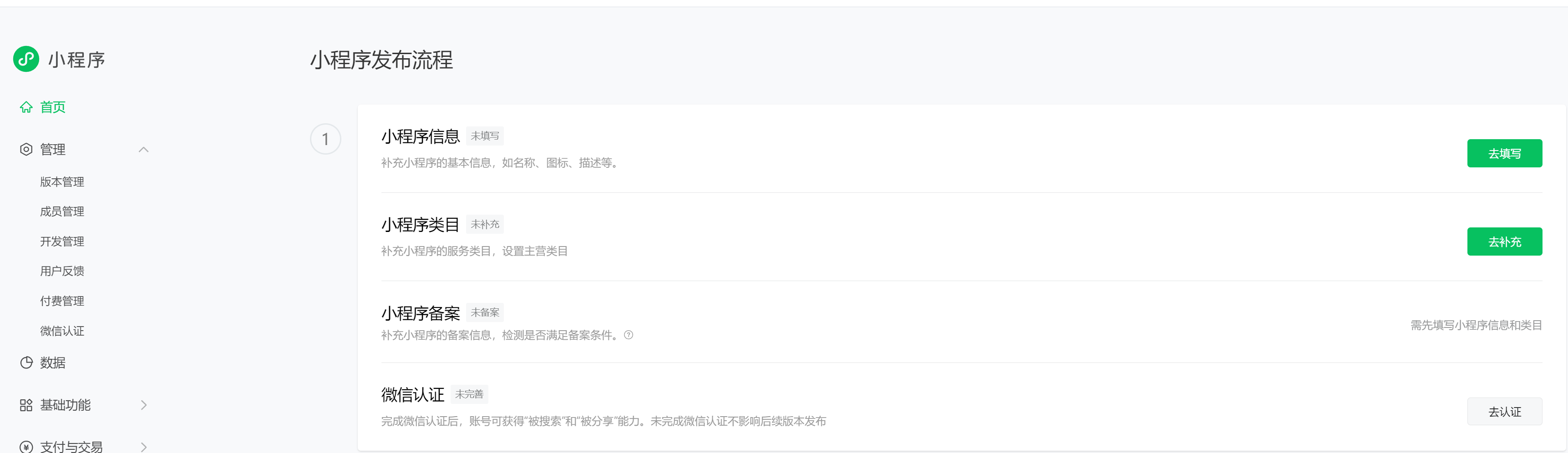 5、 点击”前往小程序”,进入MP首页,如图所示