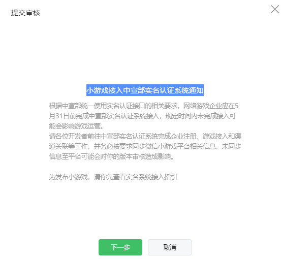 以上流程仅针对微信小游戏完成实名认证系统的接入,其他渠道请自行处理;