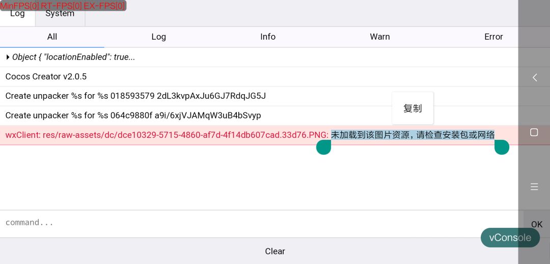 微信小游戏未加载到该图片资源请检查安装包或网络