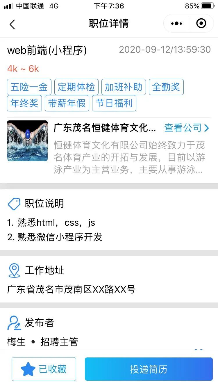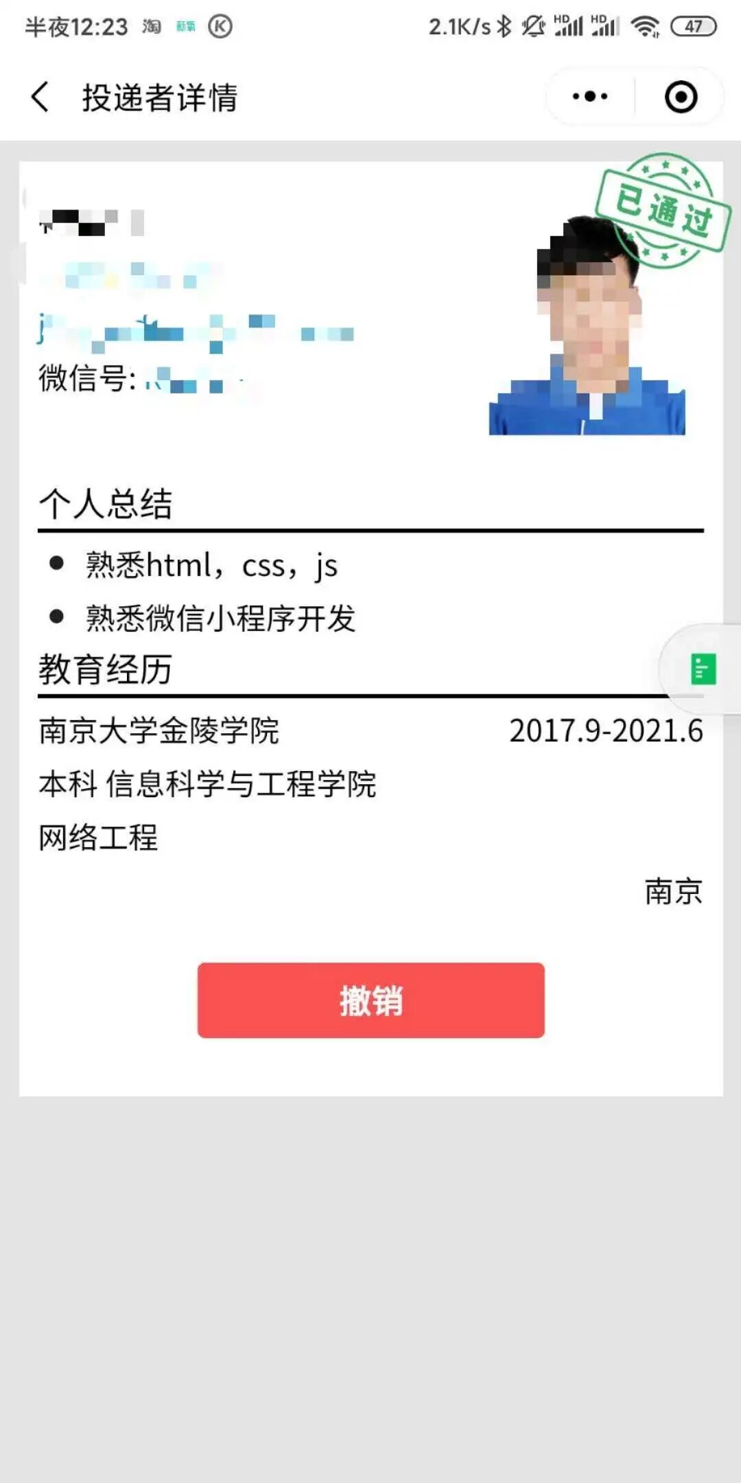 小程序通过云开发,实现学生投简、企业招贤、线上咨询三大主要功能