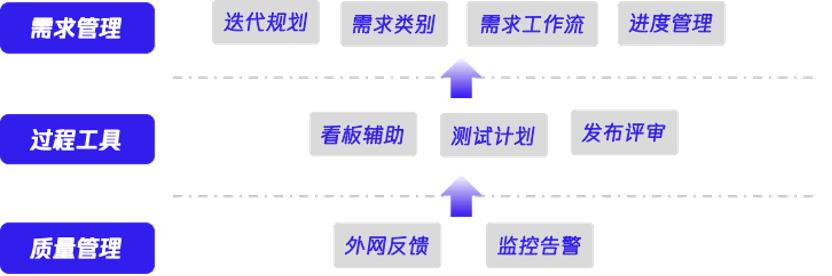 - 流程追踪:从概念形成、产品规划、需求分析、项目规划、质量测试、构建发布到用户反馈,贯穿研发生命周期,高效回溯流程,沉淀经验。