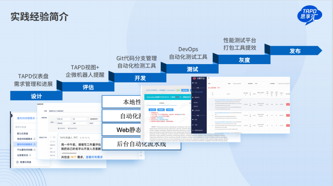 同时,我们也自建了研效平台,通过在TAPD项目管理过程中回收数据,比如每个环节的持续时间、投入工时等来度量研发过程中的效率变化情况。