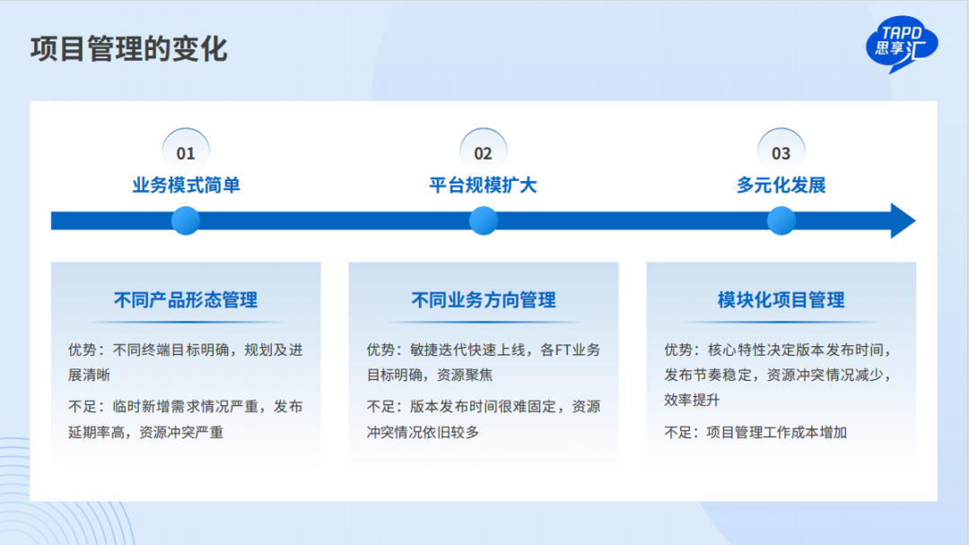 总而言之,项目管理是一个随着时代不断探索和变化的领域,我们要根据产品的方向、行业的变化,还有不同时期团队规模来制定和调整项目管理模式,这样我们才能更好的为我们的团队服务。