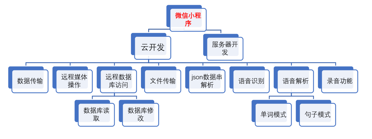 本次参赛作品的特色,运用服务器和云开发两种部署方式完成相同的功能,利用到了云开发所涉及的各种技术,包含云存储、云函数、云数据库等完成了一系列功能,采用数据传输,远程的语音播放,远程数据库访问、读取,文件传输,json数据串解析,语音识别,语音测评,音素判别等技术,实现了语音评测模型的应用。