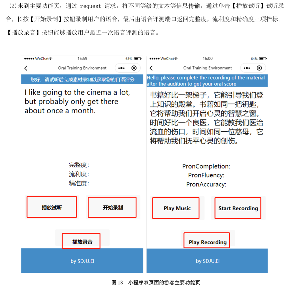 - 参赛作品采用多语言界面,不但使得母语为汉语的用户能够进行英语口语的评测,也让母语不是汉语的用户在体验汉语博大精深的同时,学习到汉语。