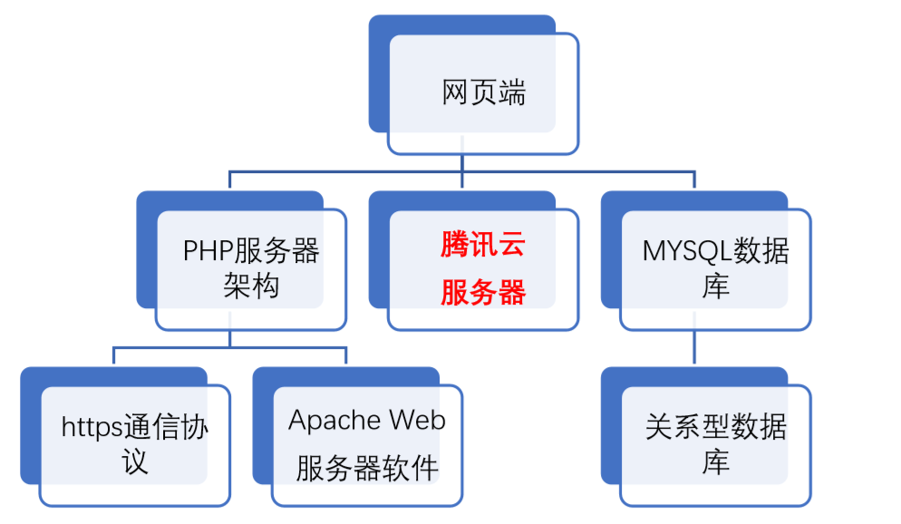 本次服务器的搭建采用了腾讯云的云服务器。通过远程登陆操作,域名解析服务,https服务,部署了一台24*7小时全天候的高效率服务器,有效的解决了服务器部署困难,高效率,全天候,易管理性,性能保障等各种问题。通过此种架构,教师能够有效的进行学生数据的管理,修改和查看。学生也能简单地使用小程序访问每周的测试内容,并将成绩存储在数据库内。通过使用服务器也能加强数据的安全性、执行效能及存储性能。