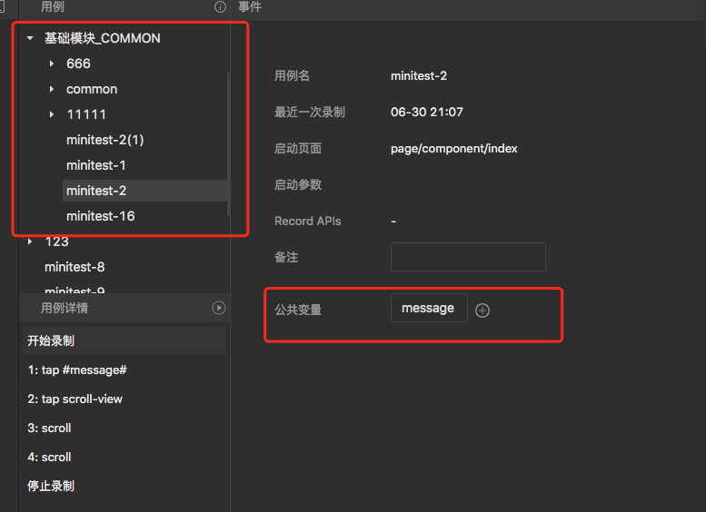 1、录制基础模块用例,并支持传入公共变量