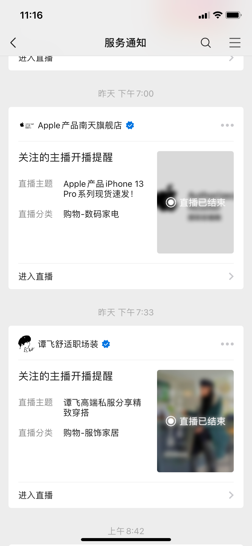 预约之后,在直播开始时,将会有消息推送提醒用户进直播间: