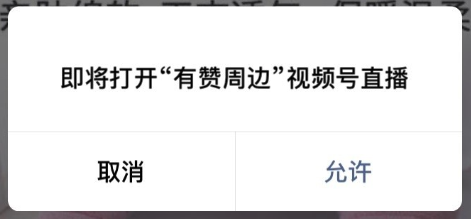 - 需要用户确认跳转,在跳转至视频号直播前,将统一增加弹窗,询问是否跳转,用户确认后才可以跳转视频号直播。