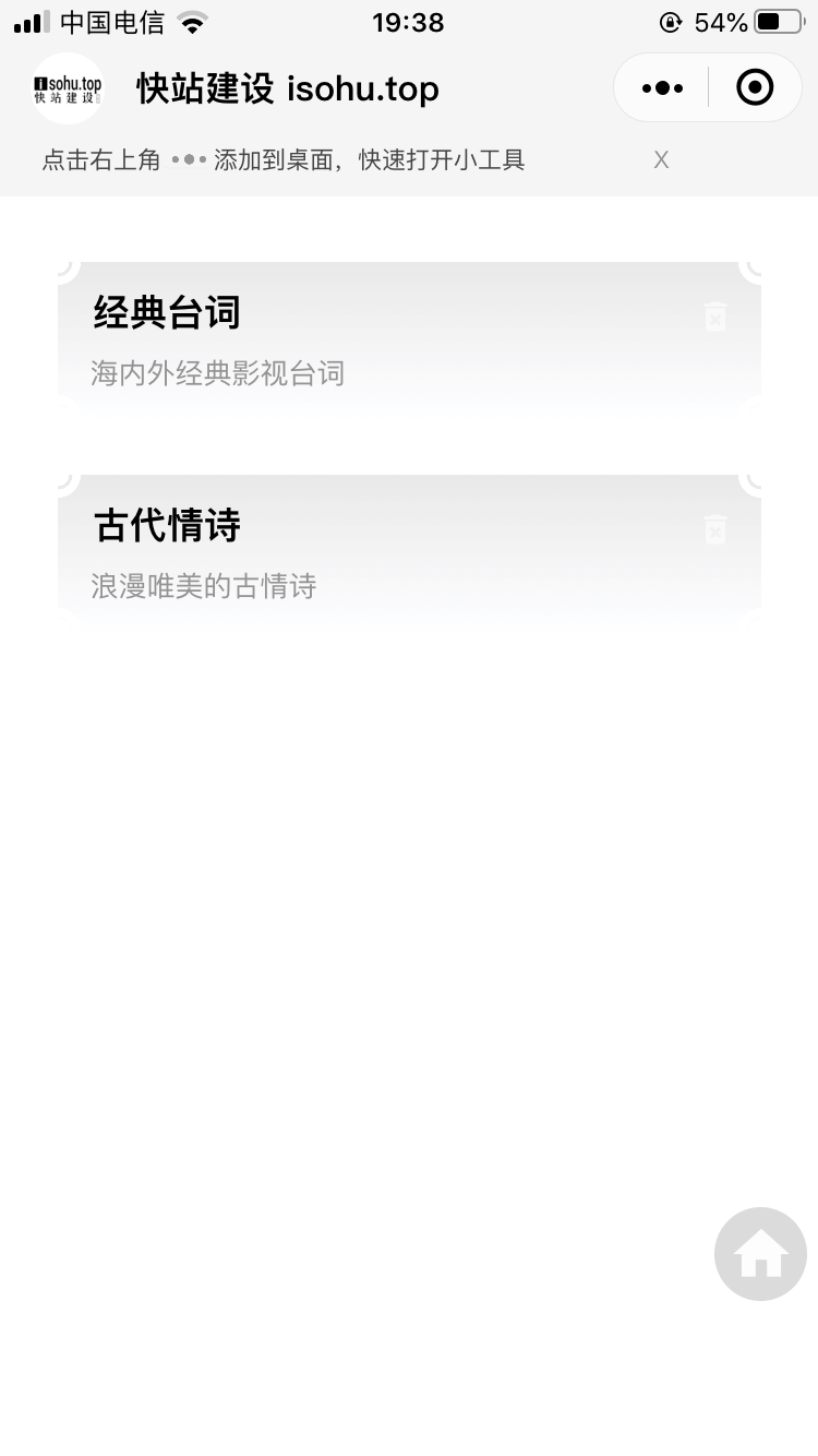 - 由于每个企业可能制作很多不同的小程序,根据推广的需求,在小工具的底部配置了根据不同的参数跳转到不同的小程序。
