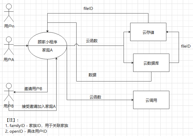 用户 -> 创建家庭 -> 分享给其他用户 -> 其他用户加入家庭
