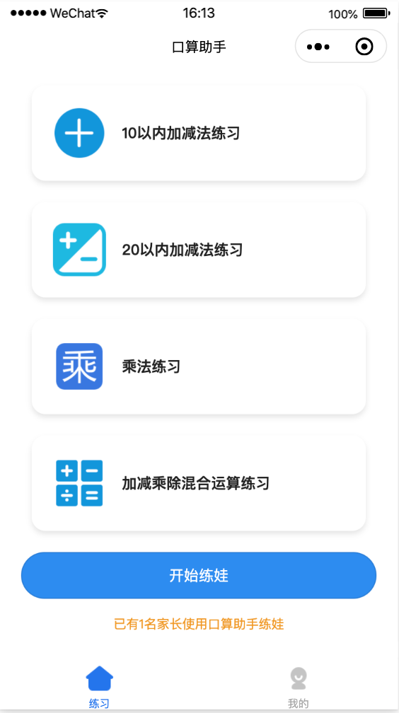 口算助手是一款辅助家长给小孩练习口算的轻量级工具型小程序
