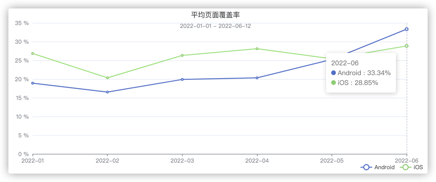 从目前的统计结果看,20 分钟安卓和 iOS 的平均页面覆盖率都在 30% 左右。