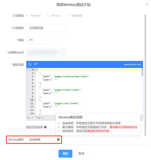 在开始自定义 Monkey 测试前,用户需要前往【测试计划】页面配置指定页面列表,在测试时先直接通过配置的 path+query 方式打开指定页面列表。