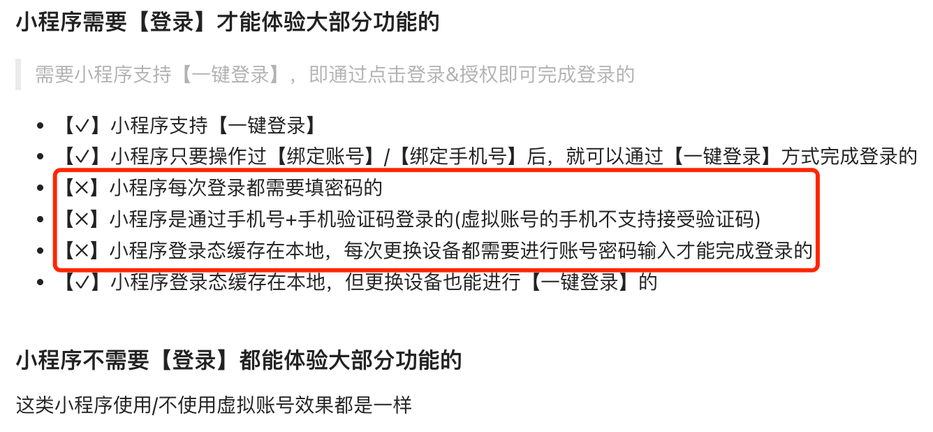若小程序必须登录才能使用,且符合截图中标记的这3项之一,就不能通过云测平台来跑自己录制或编写的用例了。