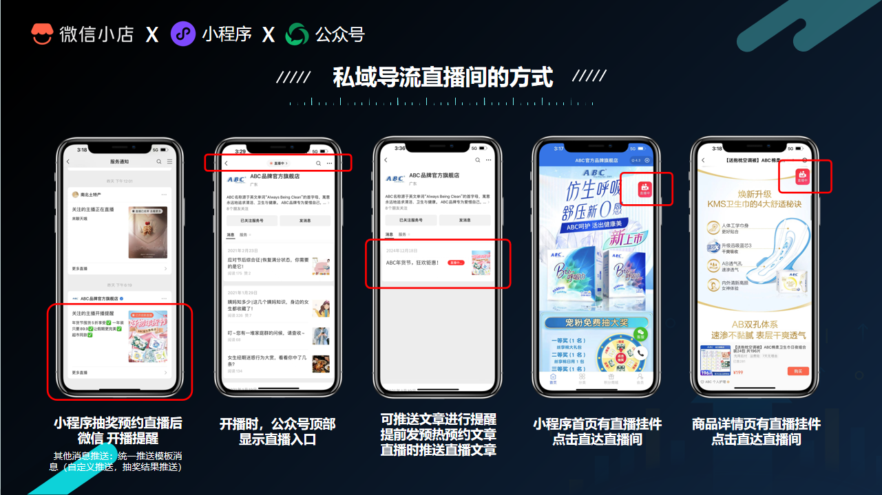 从这次微信公开课能看出,官方在力推微信小店、小程序、服务号、视频号联动的能力,想帮商家在微信里更好经营生意,不再局限于直播单一渠道和广告投放获取流量。平台一直提倡商家公私域联运,之前提供了直播间直推企微卡片和挂二维码的能力,但后来发现这种方式会让部分商家无休止地主动骚扰用户,甚至是诈骗,造成微信用户体验差,就把这个能力下架了。现在推出的这套能力,可以看作是找到了另一种给商家导私域、做公私域联运的方式,相比之前会更温和,既能有效防止商家过分主动骚扰用户,又留了个口子让商家触达用户做精细化运营,这很符合微信的风格,用产品思维解决运营效率问题。